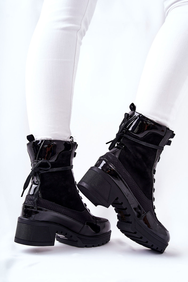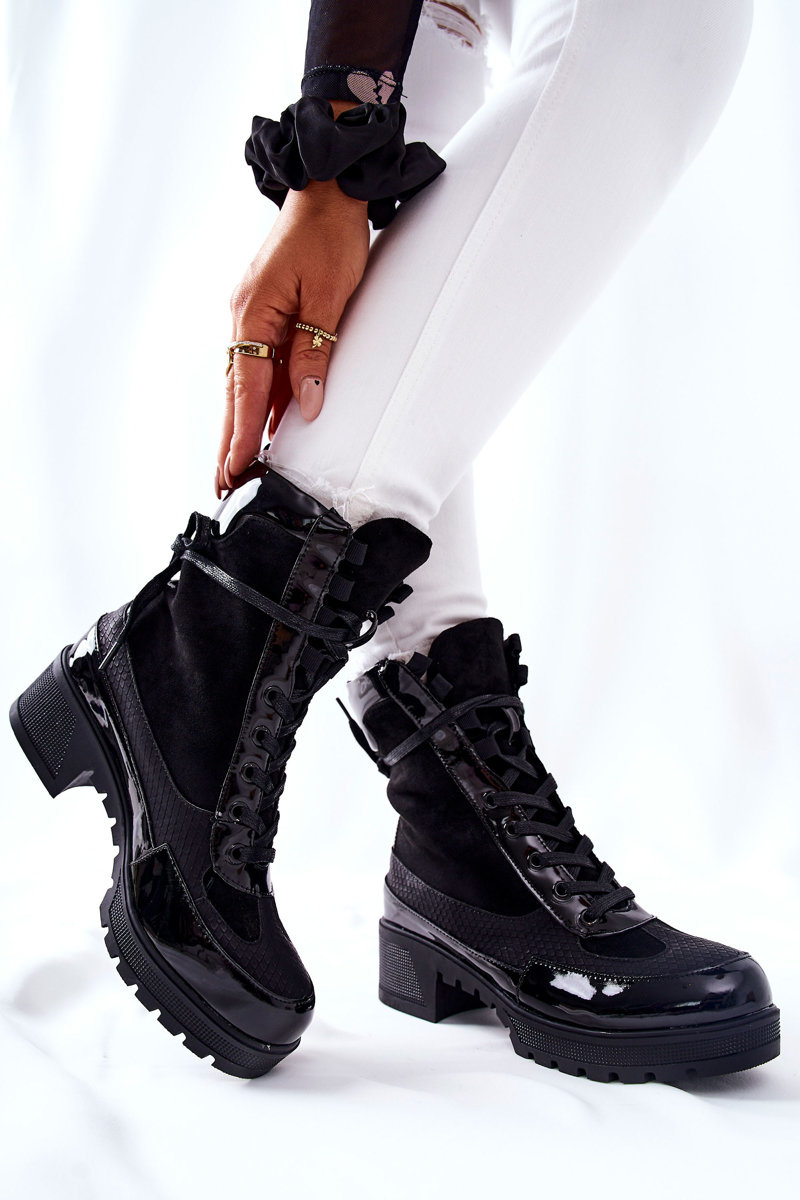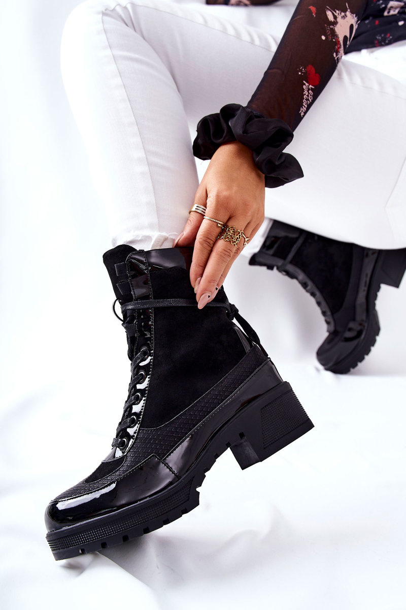 Черевики виготовлені з еко шкіри, а верх верху та підошва з лакованої еко шкіри. Вони мають прив'язку. Ніжний каблук на шпильці делікатно підтягує силует. Чудова модель, яка додасть характеру вашому стилю! Ви повинні їх мати! Під час вибору розміру зверніться до таблиці розмірів