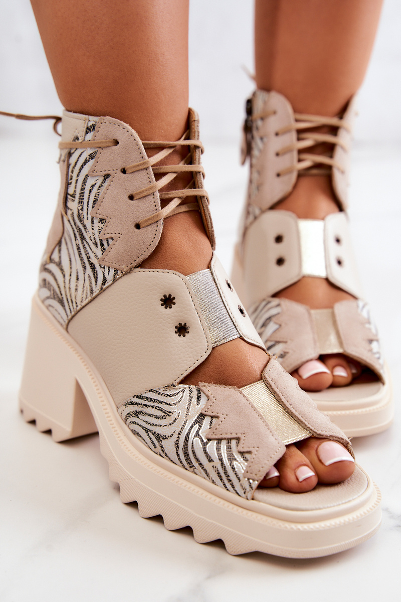 Унікальні черевики від авторитетної компанії Maciejka. Взуття виготовлене з натуральної шкіри та тканини. М'яка шкіряна устілка забезпечить комфорт у будь-якій ситуації. Верх має блискавку для зручного надягання та зав'язування. Взуття має виріз для відкритих пальців. Завдяки еластичним стрічкам взуття ідеально сидить на нозі. Масивний каблук забезпечить стійкість. При виборі розміру скористайтеся таблицею розмірів.