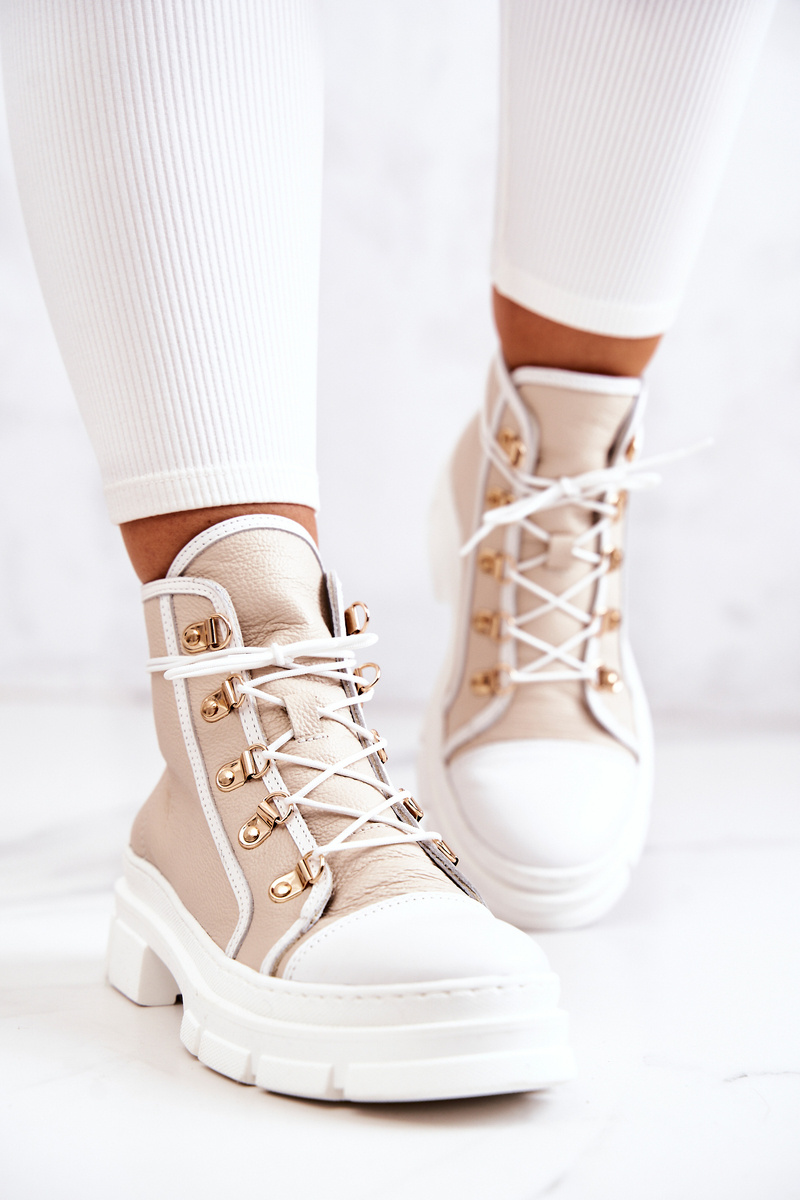 Шкіряні чоботи бежево-білі Letty