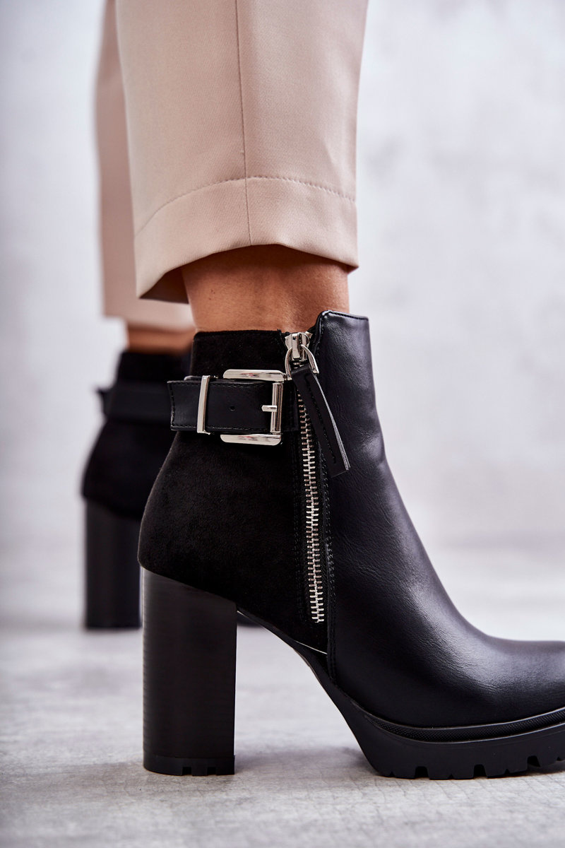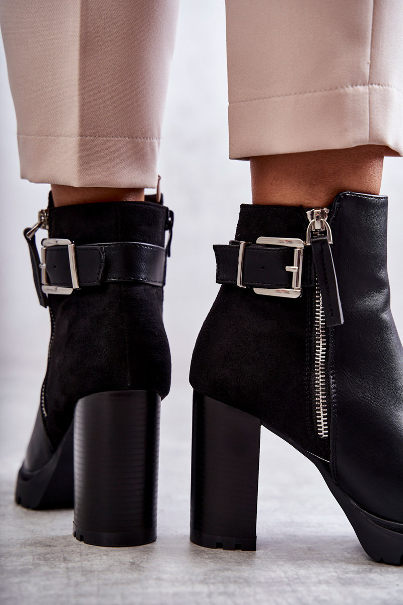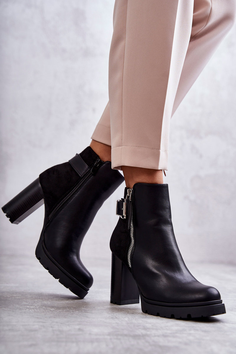 Шкіряні чоботи на високих підборах з декоративною блискавкою Чорні Rosita