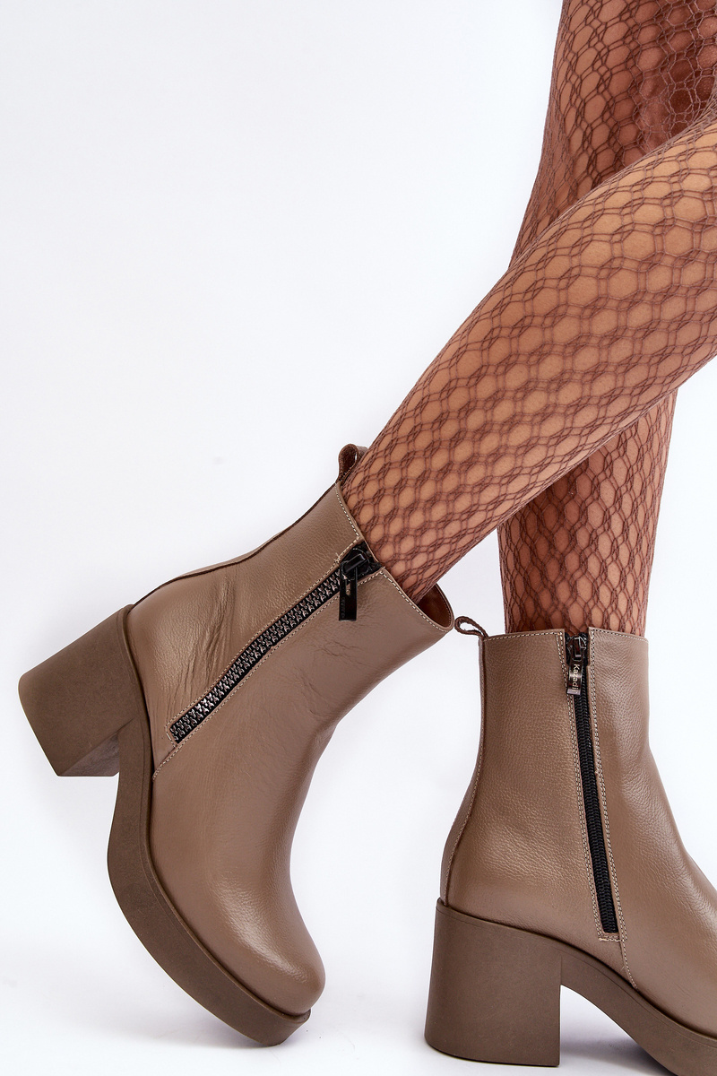 Шкіряні чоботи на масивному каблуці та блискавці Темно-бежеві Lemar Littosa