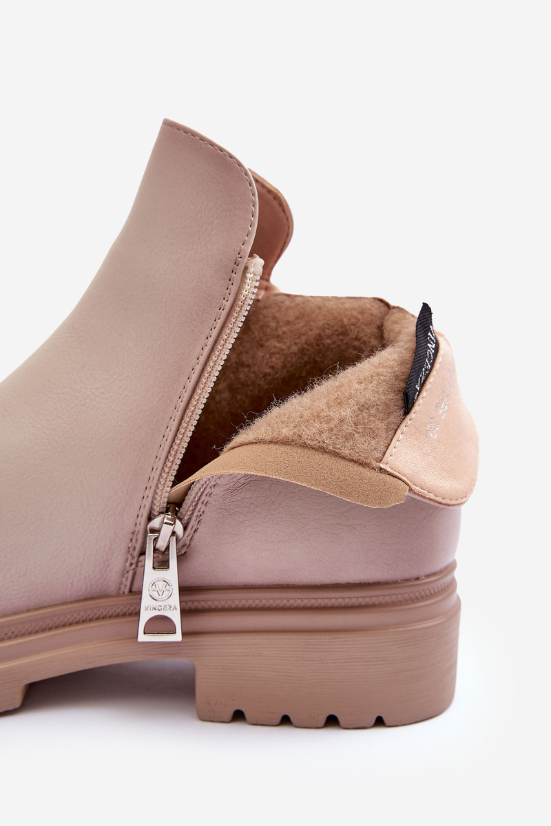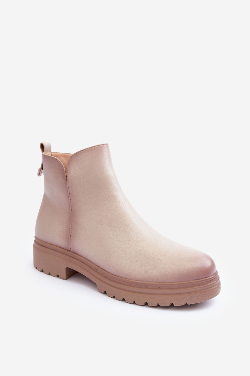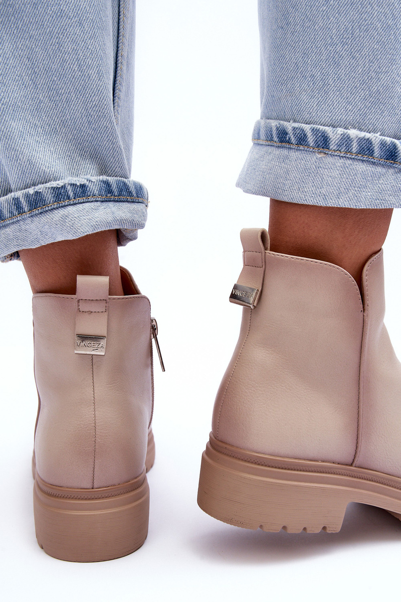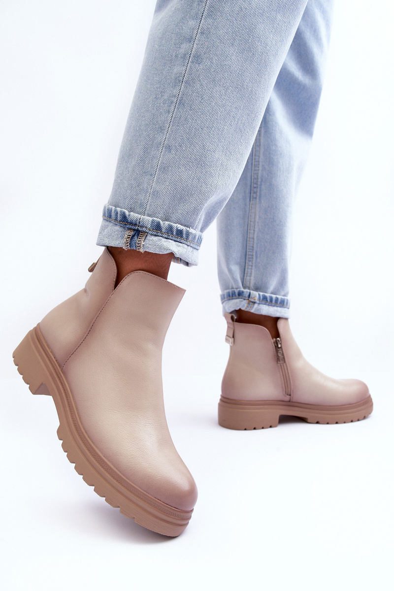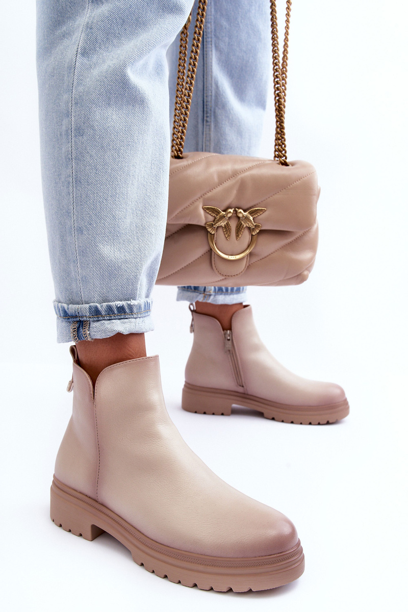 Шкіряні чоботи на низькому ходу бежеві Foteini