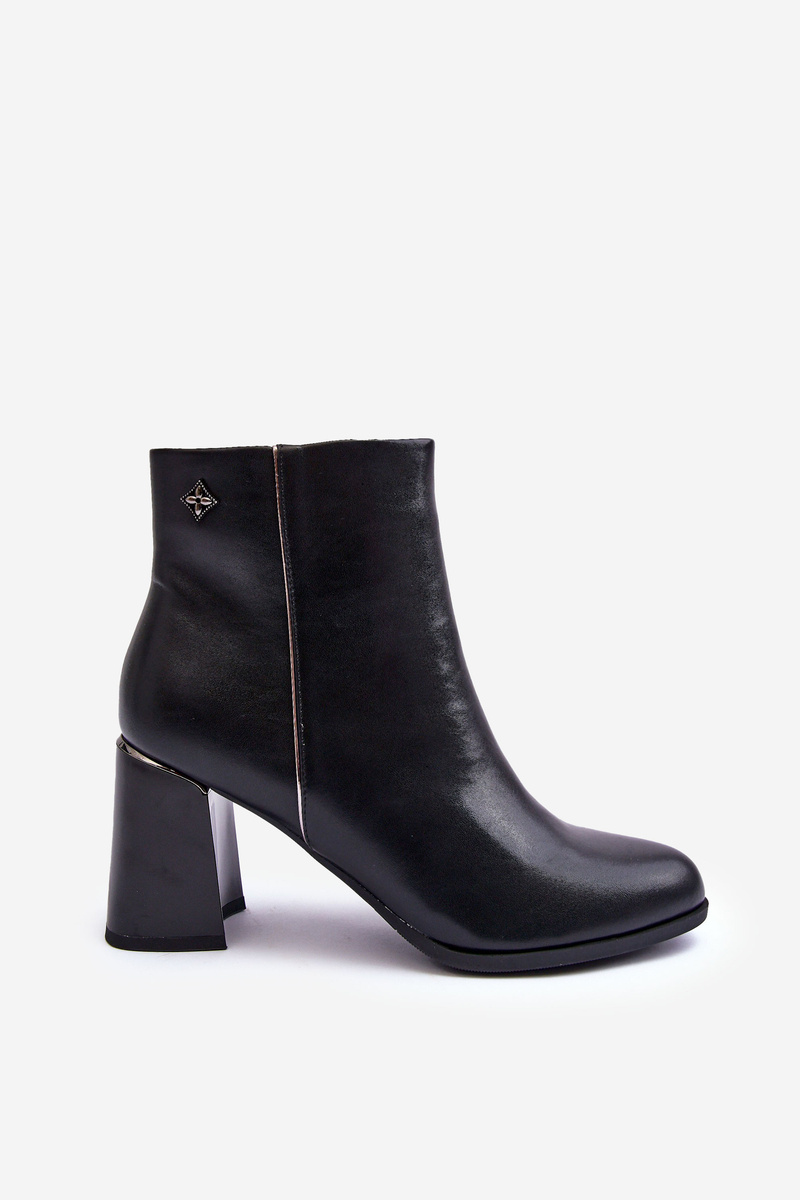 Класичні жіночі ботильйони на шпильці. Виготовлена з еко шкіри. Застібається на блискавку з внутрішньої сторони верху. Зсередини утеплена підкладкою. Гострі пальці. Невеликий декор збоку на верху та дзеркальний елемент над п'ятою. Носок жорсткий. При виборі розміру орієнтуйтеся на таблицю розмірів.