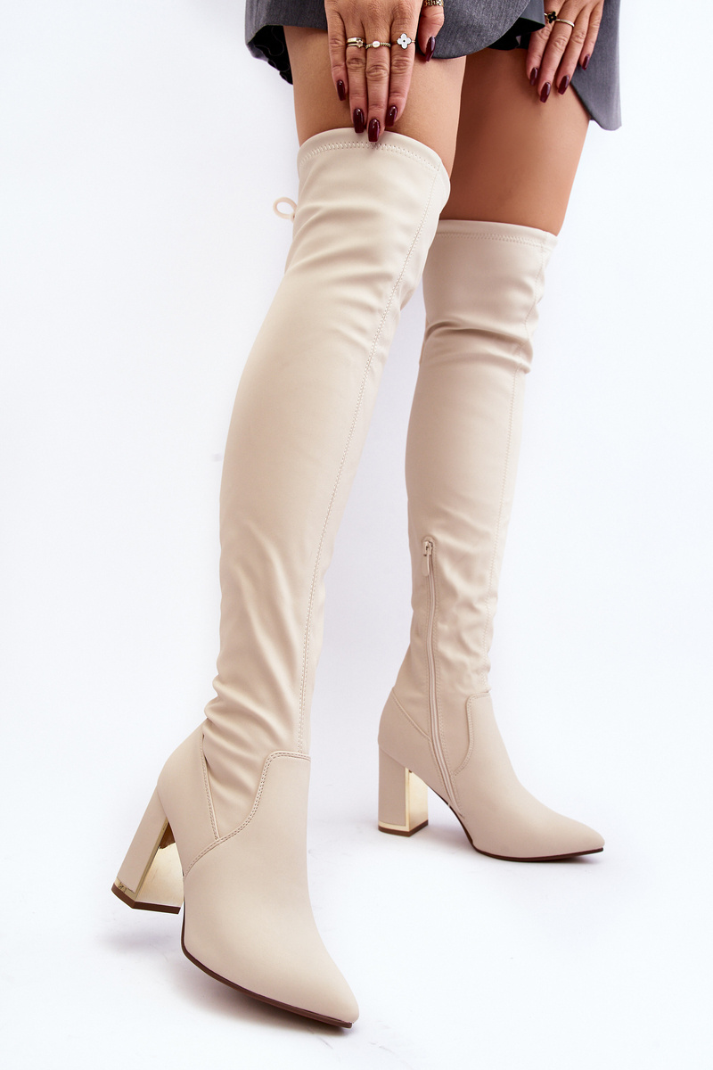 Шкіряні чоботи на підборах бежеві Amalitas