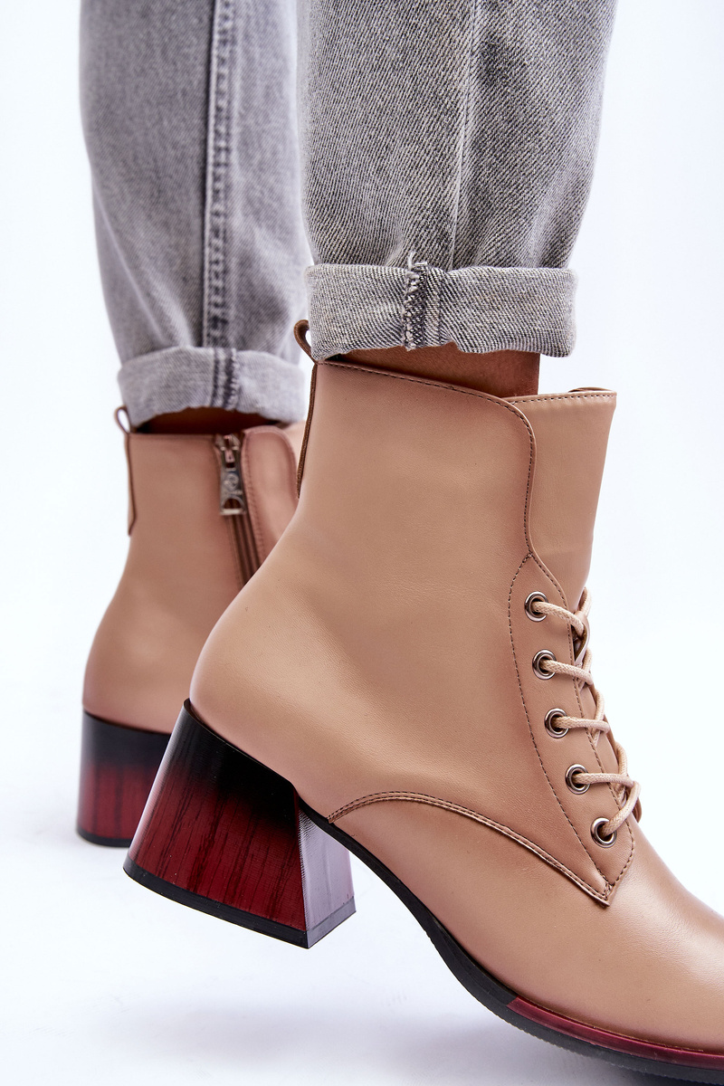 Шкіряні чоботи на підборах бежеві Luloshe