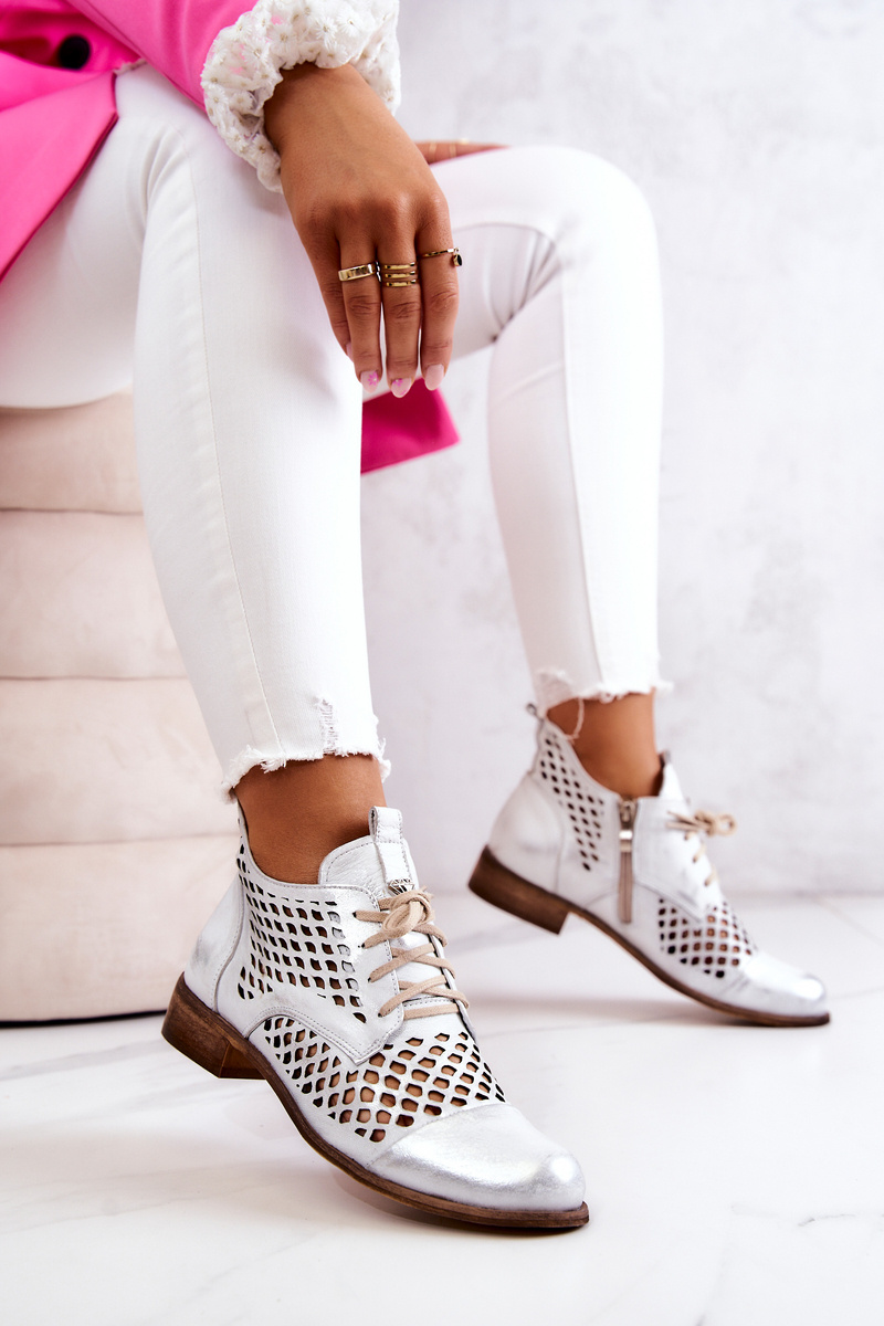 Чудові, ажурні туфлі Ніколь. Виготовлений з високоякісної натуральної шкіри. Мають класичну палітурку та декоративний логотип на язичку. Взуття на плоскому каблуці з посиленням на п'яті. З внутрішньої сторони верху є блискавка, яка полегшує взування. М'яка шкіряна устілка забезпечить вам більший комфорт протягом дня! Ви обов'язково повинні їх мати! При виборі розміру скористайтеся таблицею розмірів.
