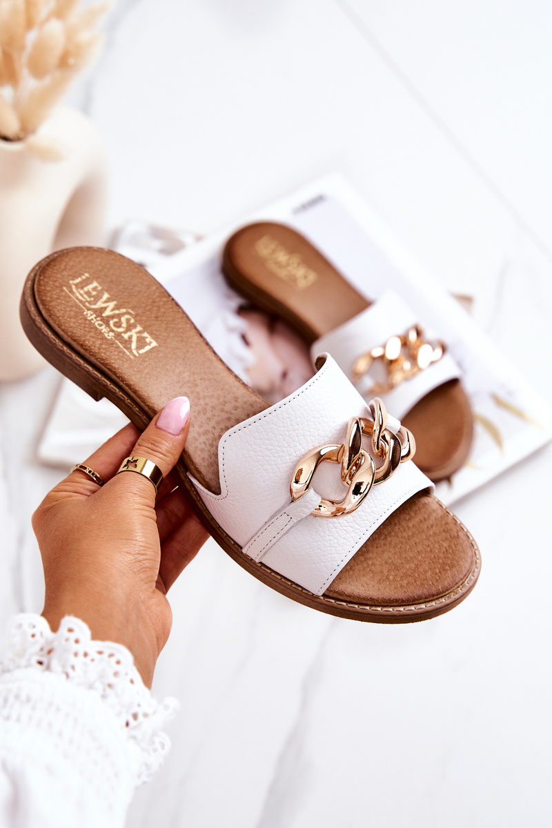 Елегантні шльопанці від польської компанії Lewski Shoes. Взуття повністю виготовлено з натуральної шкіри з увагою до деталей. Декоративний ланцюжок виглядає надзвичайно красиво. М'яка устілка подбає про ваш комфорт і зручність. Обов’язково перегляньте всю нашу колекцію шкіряних шльопанців! Під час вибору розміру зверніться до таблиці розмірів