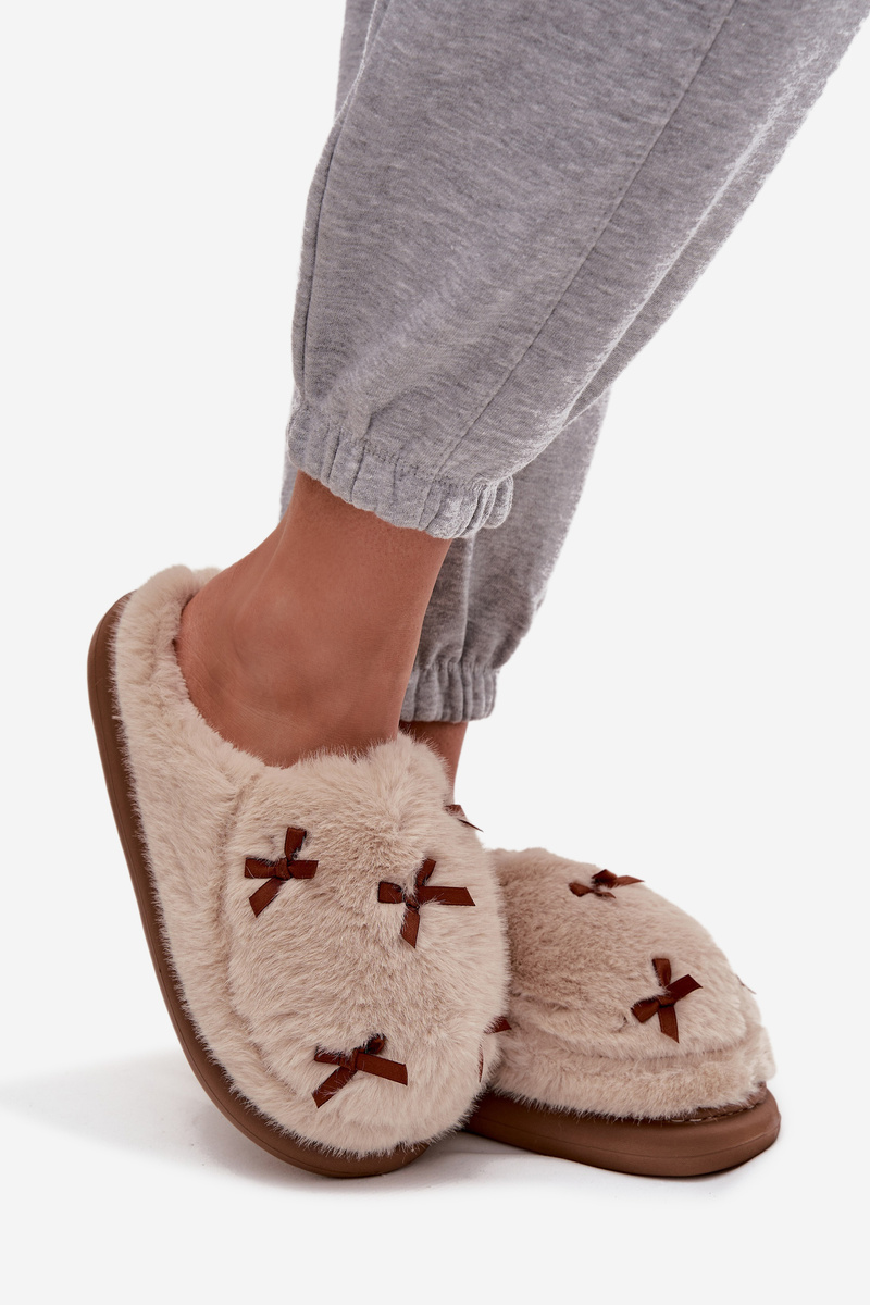 Шуб’яні жіночі тапочки з бантиками бежеві Saviera