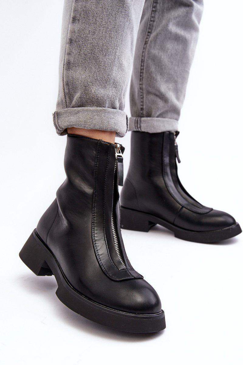 Комфортні жіночі ботильйони на плоскій підошві – відмінне повсякденне взуття. Виготовлена з еко шкіри. Застібається на практичну блискавку спереду. Висота щиколотки. Заокруглені пальці. Ця модель стане чудовим доповненням до Вашого гардеробу! Обираючи розмір, орієнтуйтеся на таблицю розмірів.