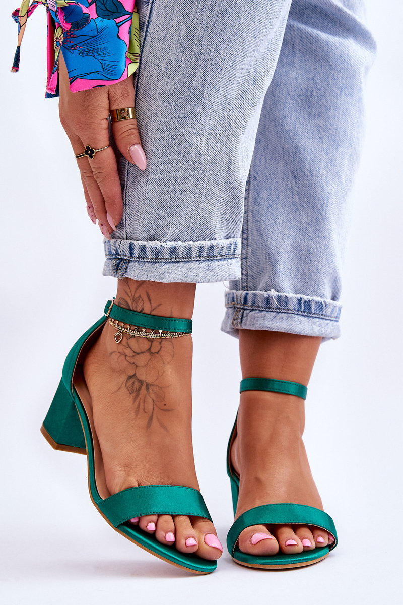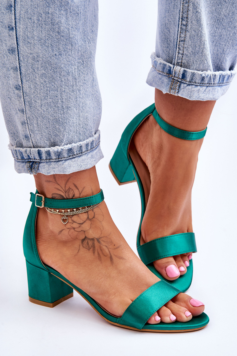 Атласні босоніжки на низькому каблуці Green Juliet