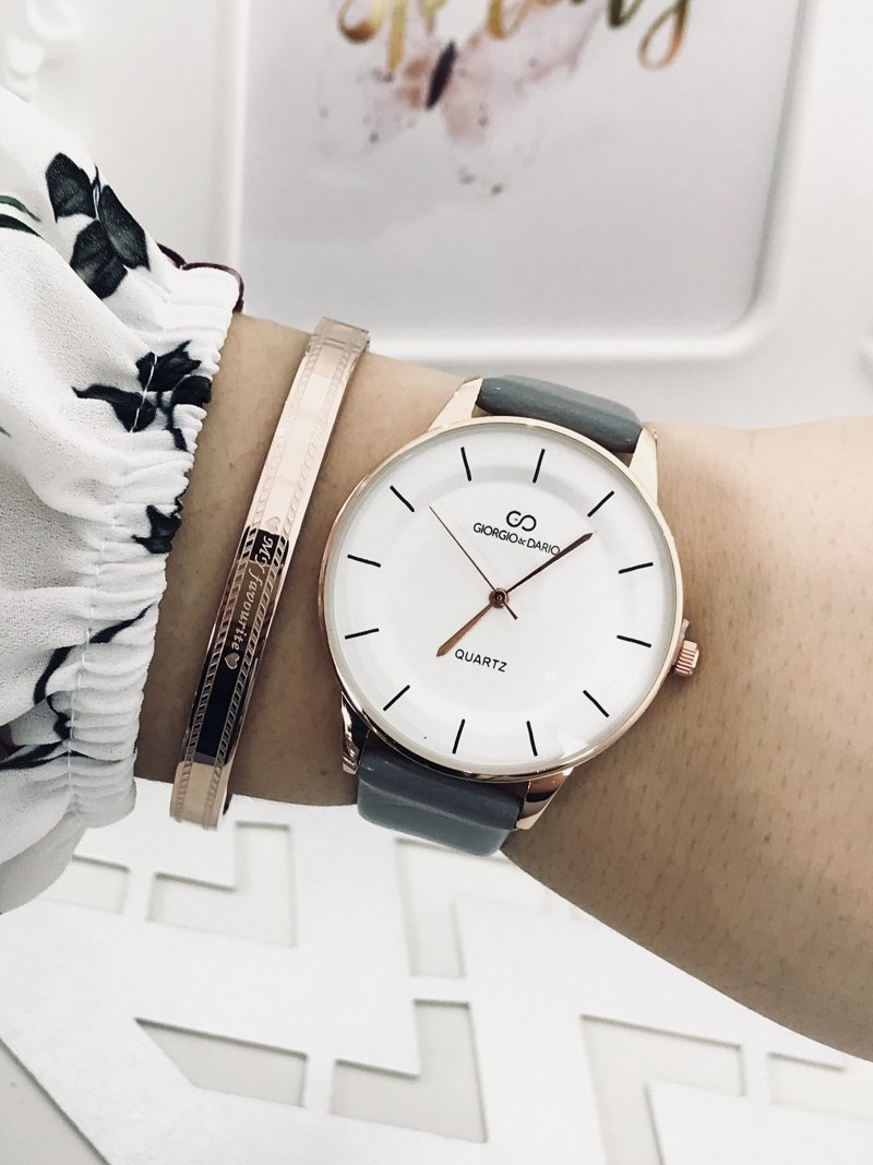 Gemini - класична та елегантна лінія жіночих годинників Giorgio & Dario. Годинник має злегка опукле скло, завдяки чому він ще краще виглядає на руках і при цьому більш читабельний. Ремінець пудрово-рожевого кольору з можливістю більш легкого регулювання, золотий корпус з хірургічної сталі. Висока якість механізму та конверта