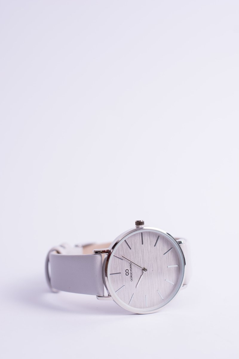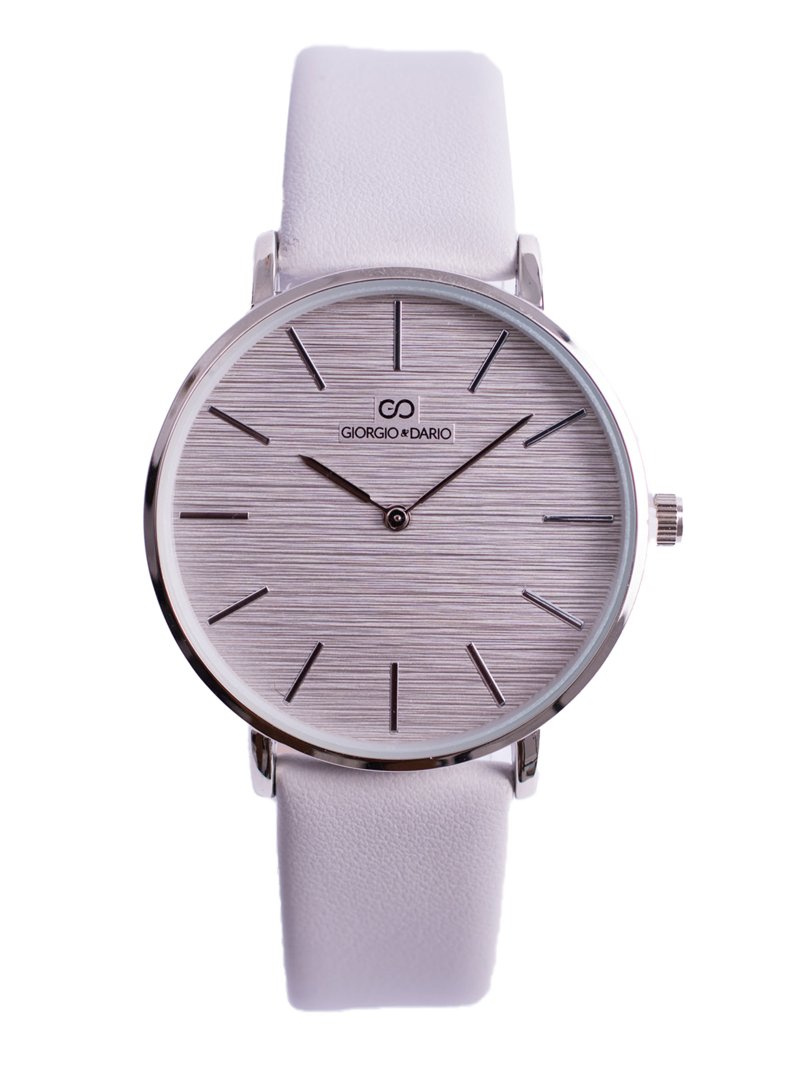Jules - класична та елегантна лінія жіночих годинників Giorgio & Dario. Доступний у двох розмірах - з маленьким диском 33 мм і великим 38 мм. Годинник має злегка плоске скло, завдяки чому він краще виглядає на руці і в той же час більш читабельний. Щит додатково прикрашений гарним полірованим конвертом кольору пояса. Ремінець виготовлений з м'якої на дотик еко-шкіри з можливістю більш легкого регулювання, корпус золотистого кольору з хірургічної сталі, підходить як для елегантних, так і для повсякденних стилізацій. Висока якість механізму та конверта.
