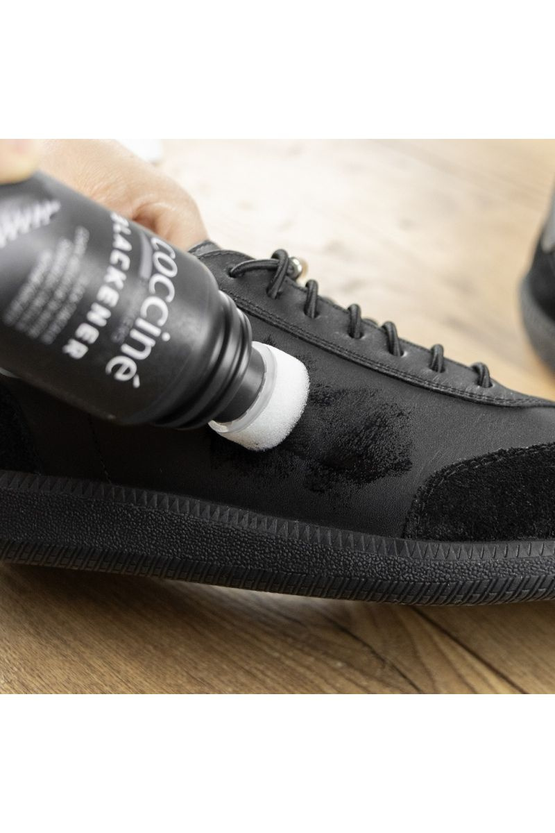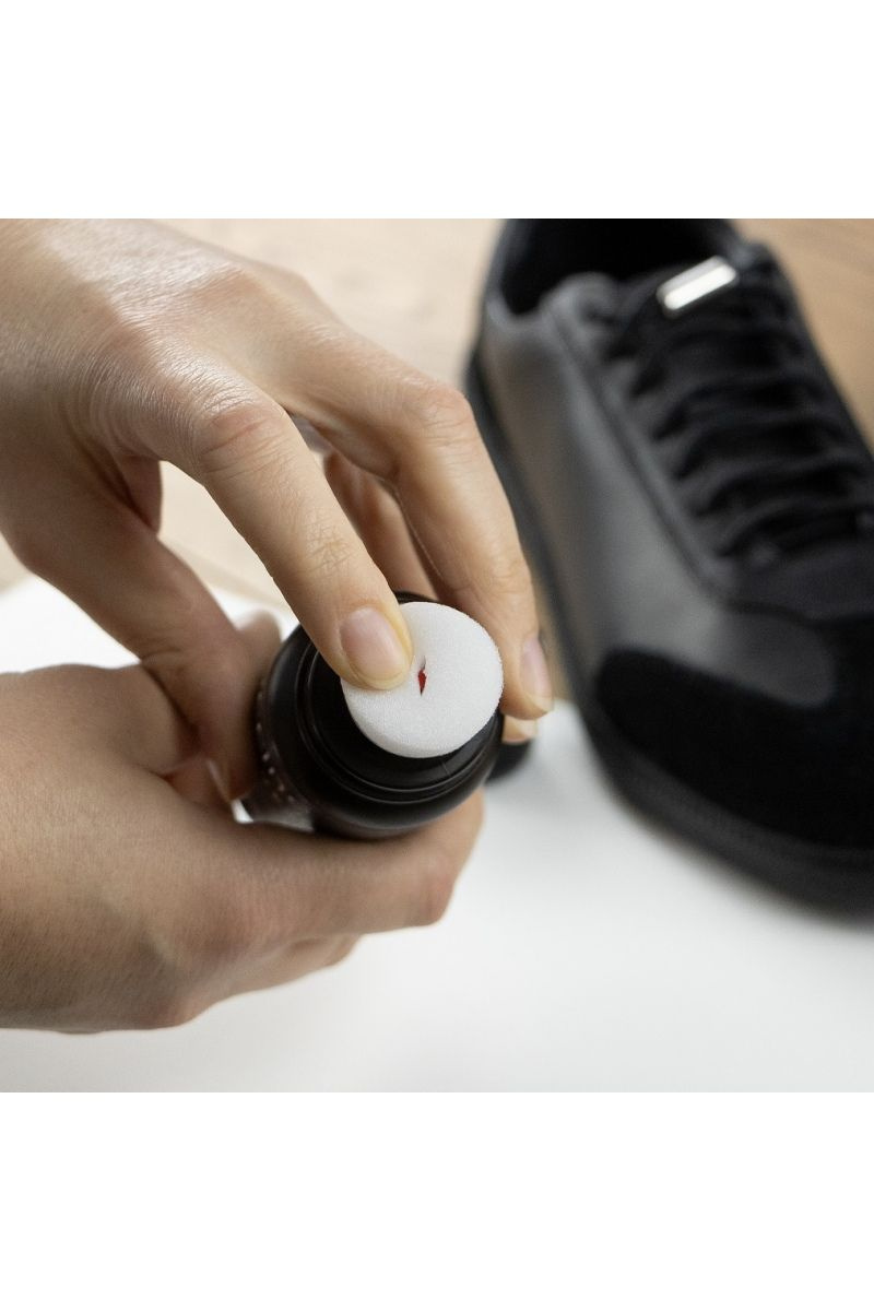 SNEAKERS BLACKENER - це чорний рідкий коректор, який ідеально маскує дрібні потертості на шкірі. Він вирівнює і поглиблює чорний колір, відновлюючи блиск. Для чорних гладких шкір, синтетичних матеріалів і підошв.