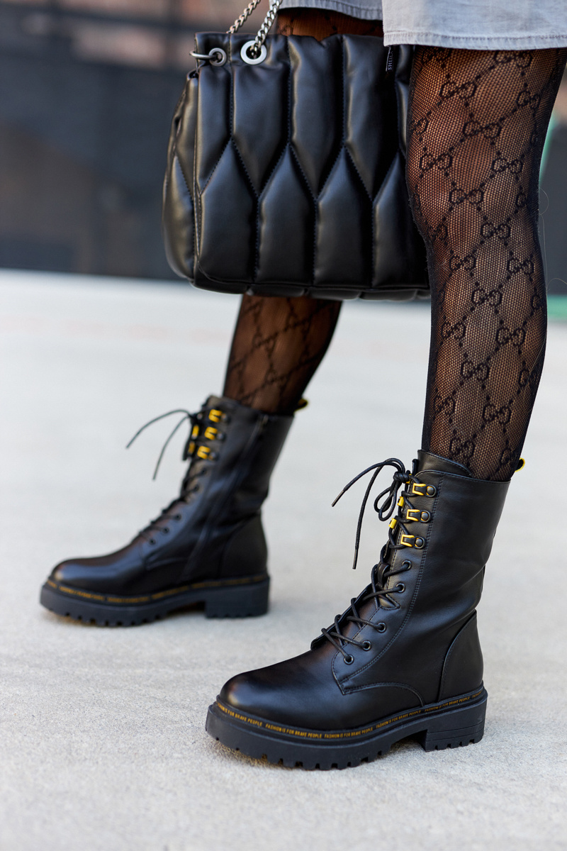 Класичні високі сумки мають застібку та блискавку. На підошві маленький напис. Черевики утеплені ковдрою для взуття. Красиві чобітки додадуть характеру вашому стилю! Плоский каблук забезпечує стійкість. Перевірте всю нашу колекцію багерів! Під час вибору розміру зверніться до таблиці розмірів