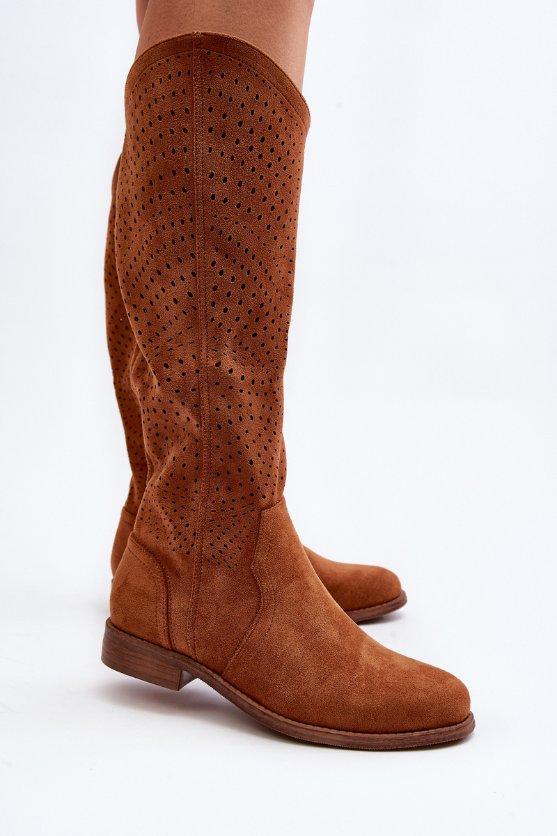 S.Barski HY66-150 Ажурні чоботи на плоскій каблуці Camel