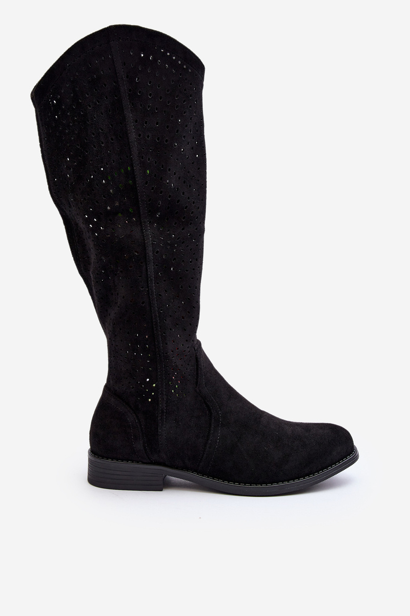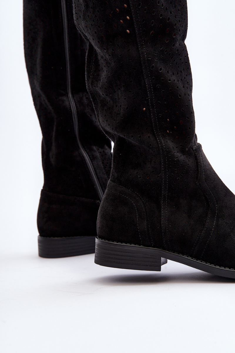 Черевики жіночі в ковбойському стилі. Виготовлений з еко-замші. На плоскій стійкій каблуці. Застібається на бічну блискавку. Модель має гратчастий верх, що доходить до коліна. Заокруглені пальці. Ідеально підходить для багатьох повсякденних укладок! Ви обов'язково повинні мати їх у своєму гардеробі! Обираючи розмір, орієнтуйтеся на таблицю розмірів.