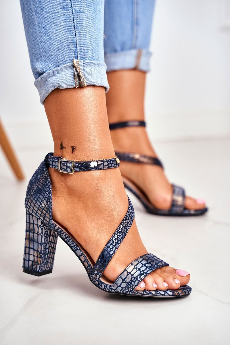 Sergio Leone SK870 Босоніжки на шпильці темно-сині з тваринним візерунком