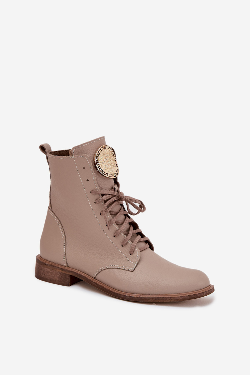 Жіночі чоботи з натуральної шкіри поєднують класичний і сучасний вигляд. Розташовані на плоскому підборі, вони забезпечують комфорт і стабільність протягом усього дня. Шнурівка дозволяє ідеально підганяти, а додатковий блискавка полегшує одягання. На язичку є золотий деталь, що додає елегантності. Ці чоботи чудово поєднуються з різними стилями, поєднуючи комфорт із модним акцентом. При виборі розміру, будь ласка, орієнтуйтеся на таблицю розмірів. Будь ласка, зверніться до розмірної сітки при виборі розміру.