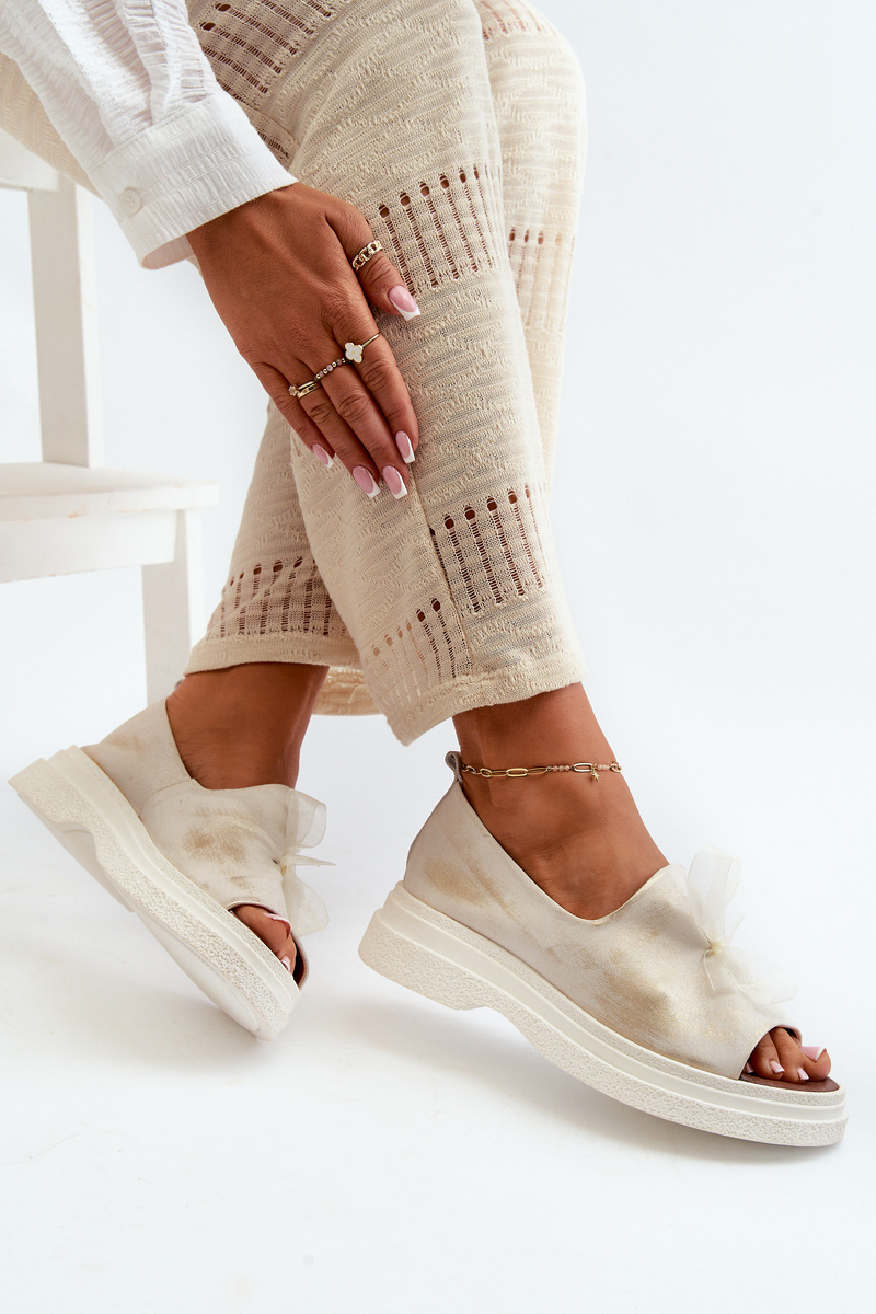 Zazoo 2939 Жіночі шкіряні босоніжки з бантом Золоті зіпсовані