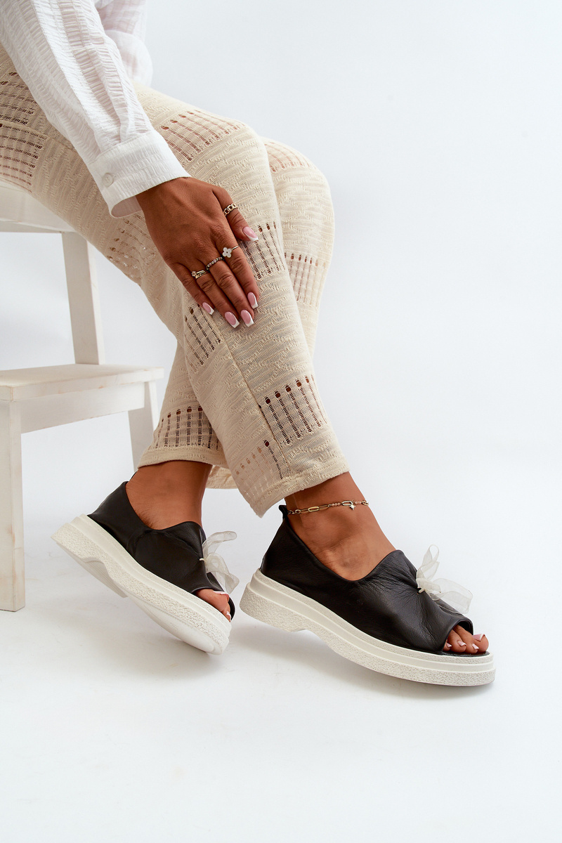 Zazoo 2939 Жіночі шкіряні босоніжки з бантом чорного кольору