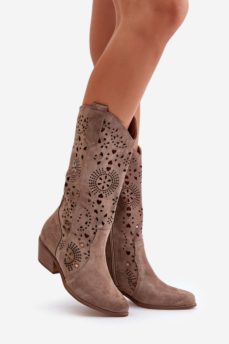 Zazoo 3396 Замшеві півчоботи темно-бежеві з вирізом