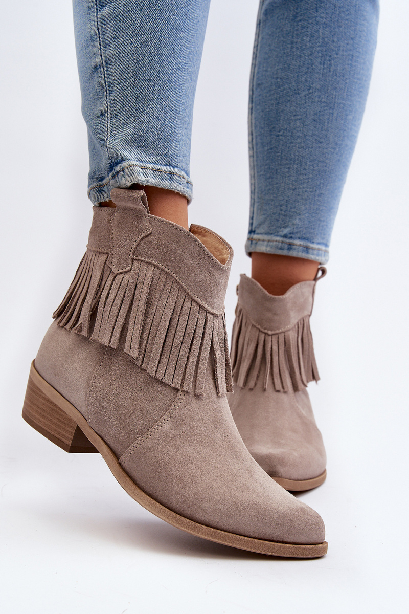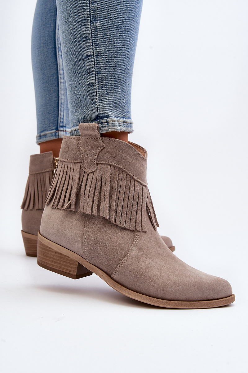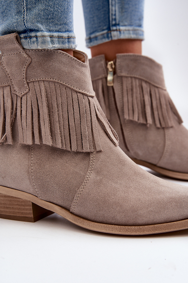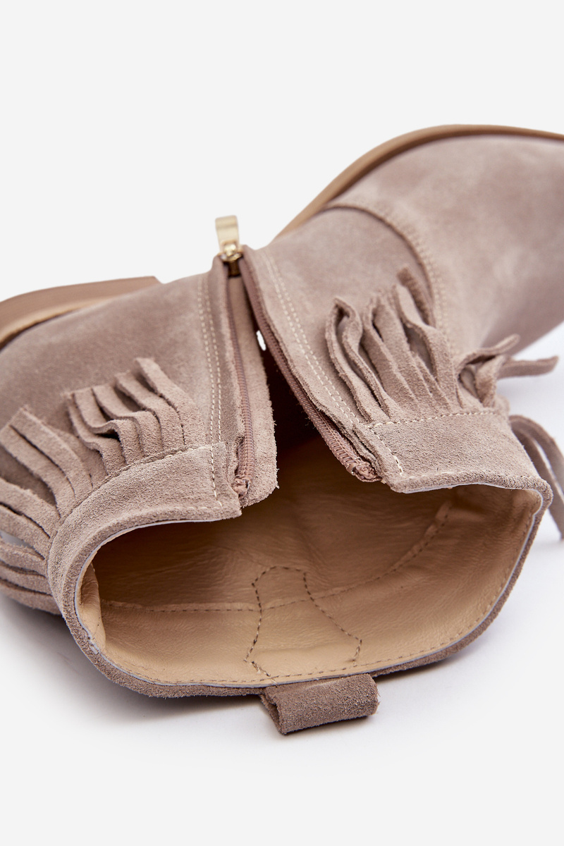 Zazoo 3430 Жіночі замшеві чоботи з бахромою капучино