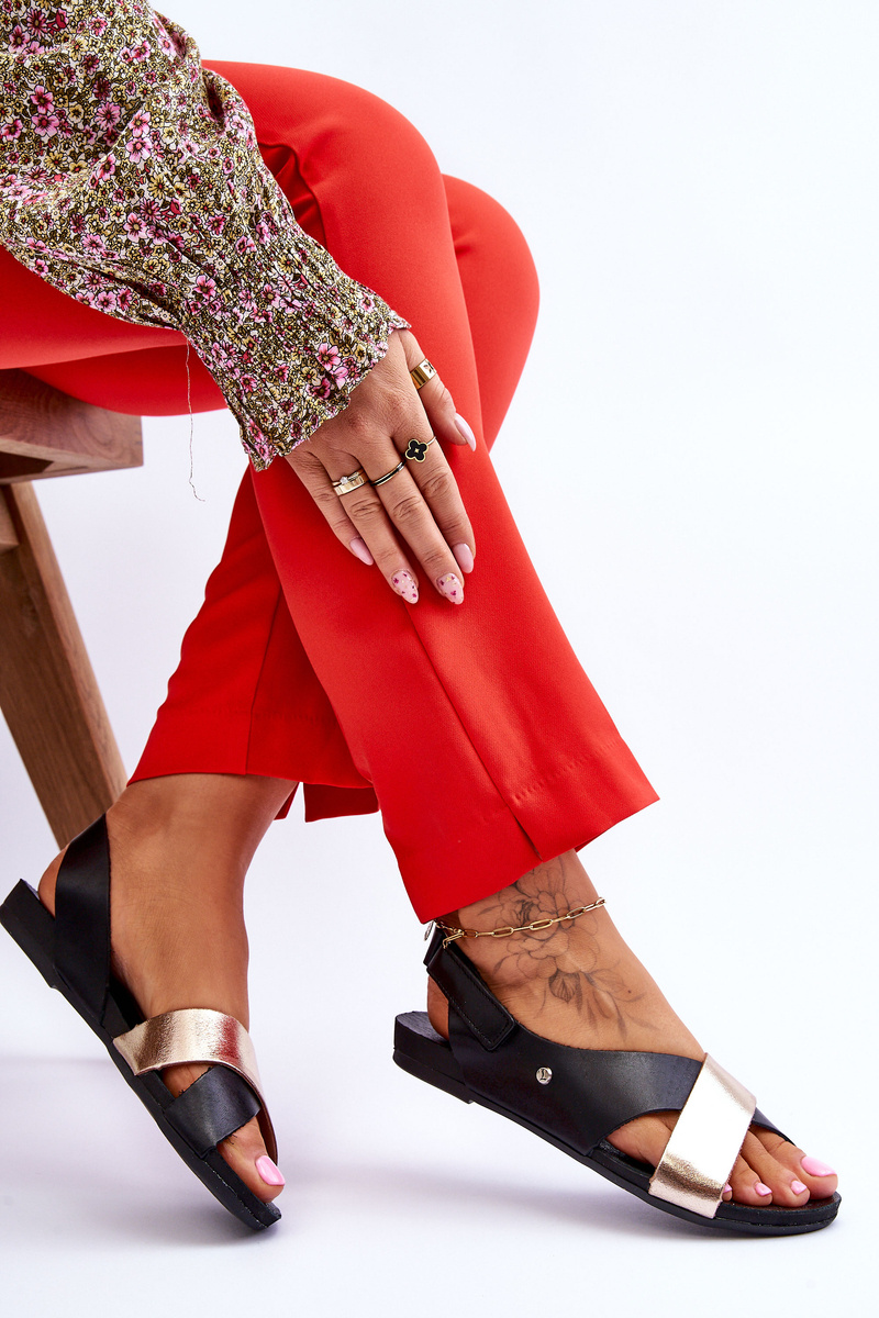 Zazoo 40141 Шкіряні босоніжки на липучці чорно-золоті