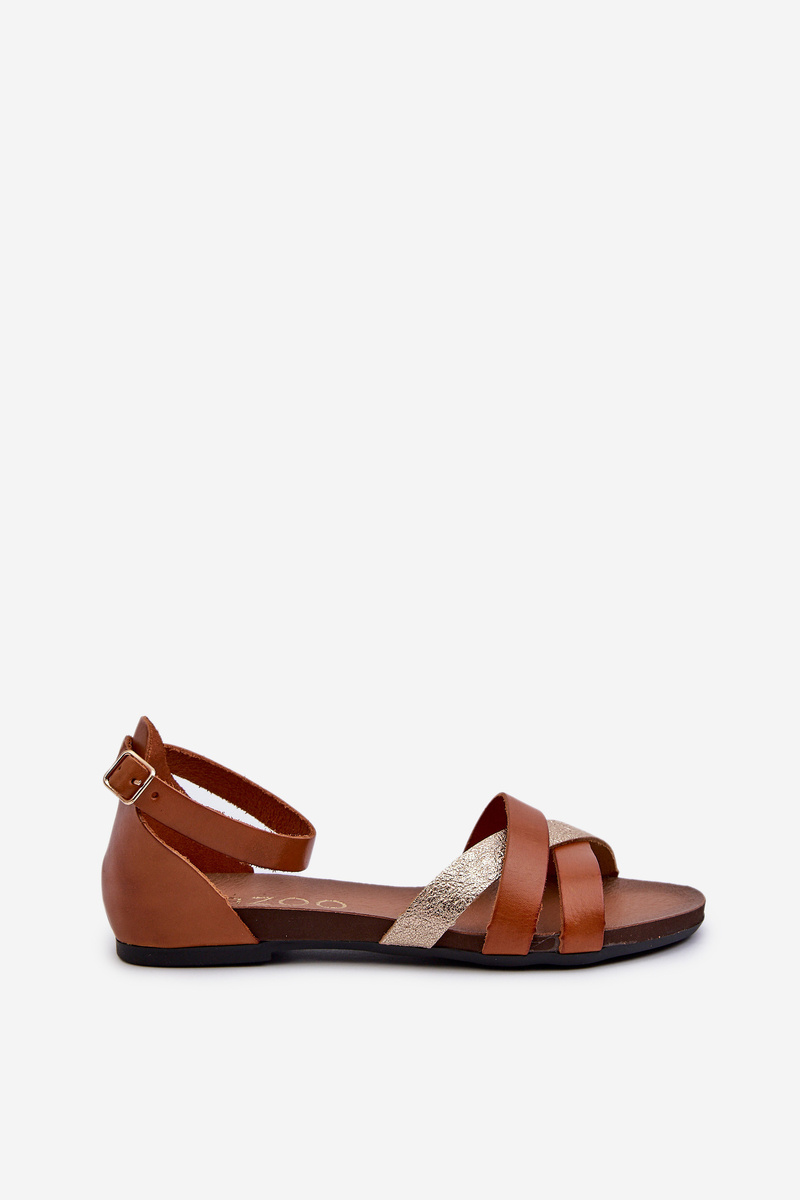 Zazoo 40225 Коричневі шкіряні босоніжки на плоскій підошві