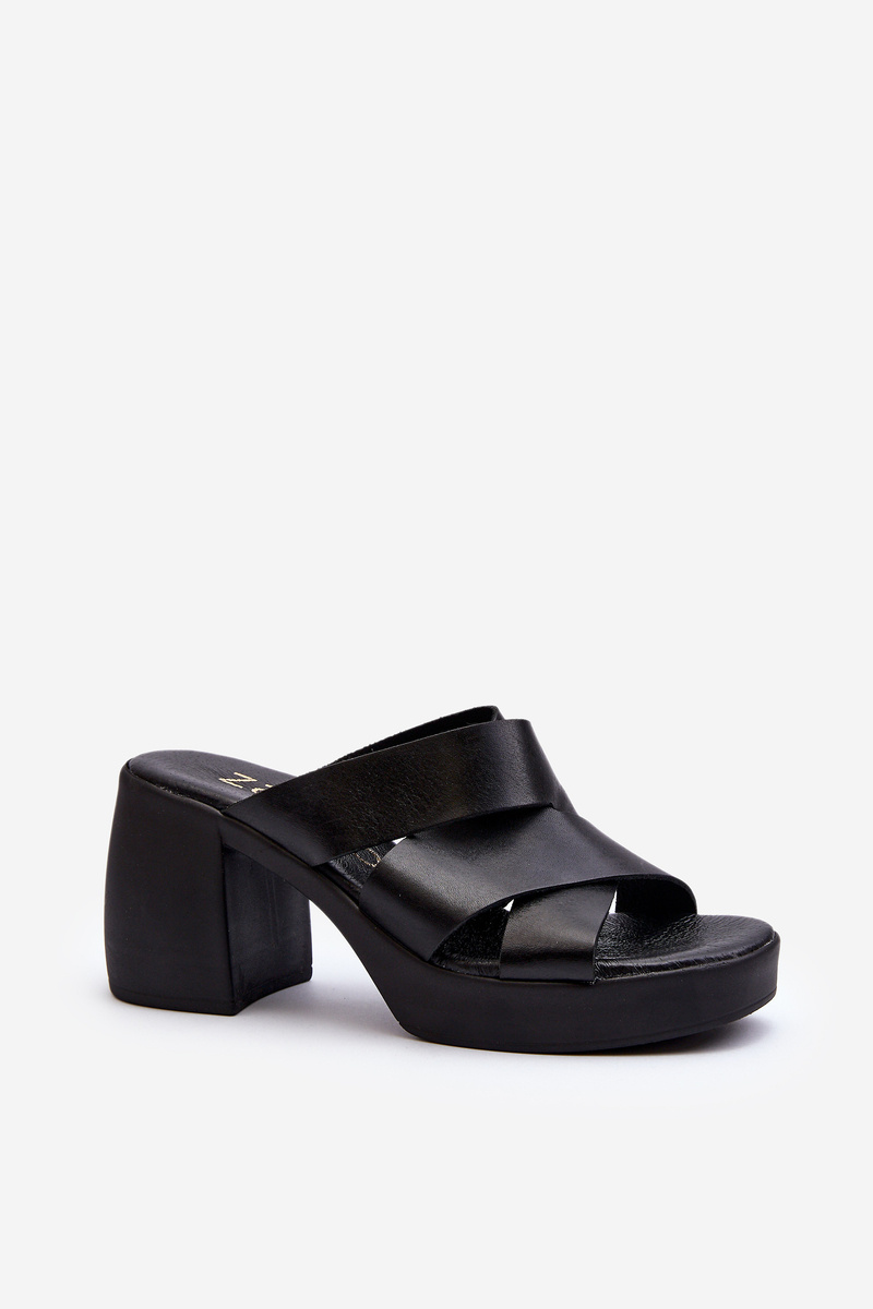 Zazoo 40373 Чорні шкіряні босоніжки на підборах