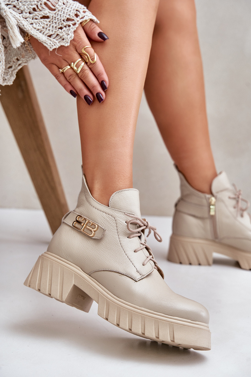 Zazoo 60483 Жіночі шкіряні ботильйони з низьким ходом, утеплені, бежеві