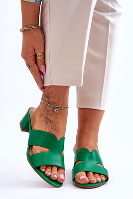 Класичні шкіряні босоніжки на низькому каблуці Green Miley