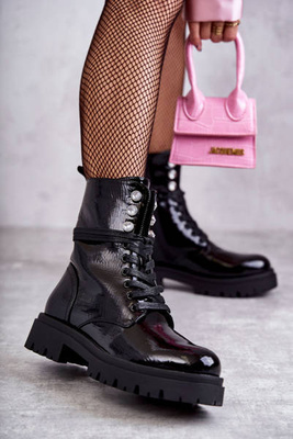 Лаковані чоботи Чоботи на шнурівці Ніколь 2781 Чорні