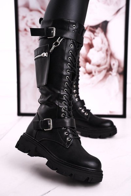 Утеплені високі чоботи з портмоне Чорні військові