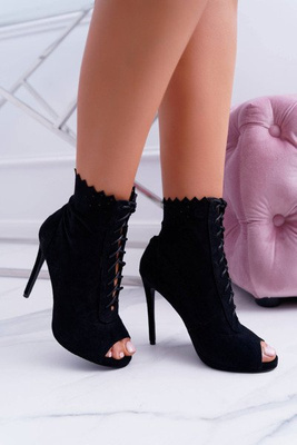 Lu Boo Чорні босоніжки на шнурівці Черевики на шпильці Наташа